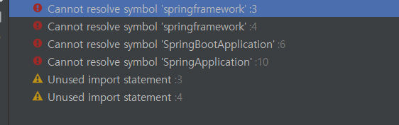 갑자기 이렇게 Spring 자체가 빨갛게 변했다.